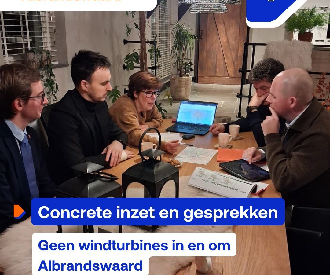 Lijsttrekker Eric van der Klooster besluit: “Het is duidelijk dat Albrandswaard niet zit te wachten op enorme windturbines. Wij begrijpen de zorgen van de bewoners en doen er alles aan om deze ontwikkeling te remmen. Zowel lokaal, regionaal als landelijk!”