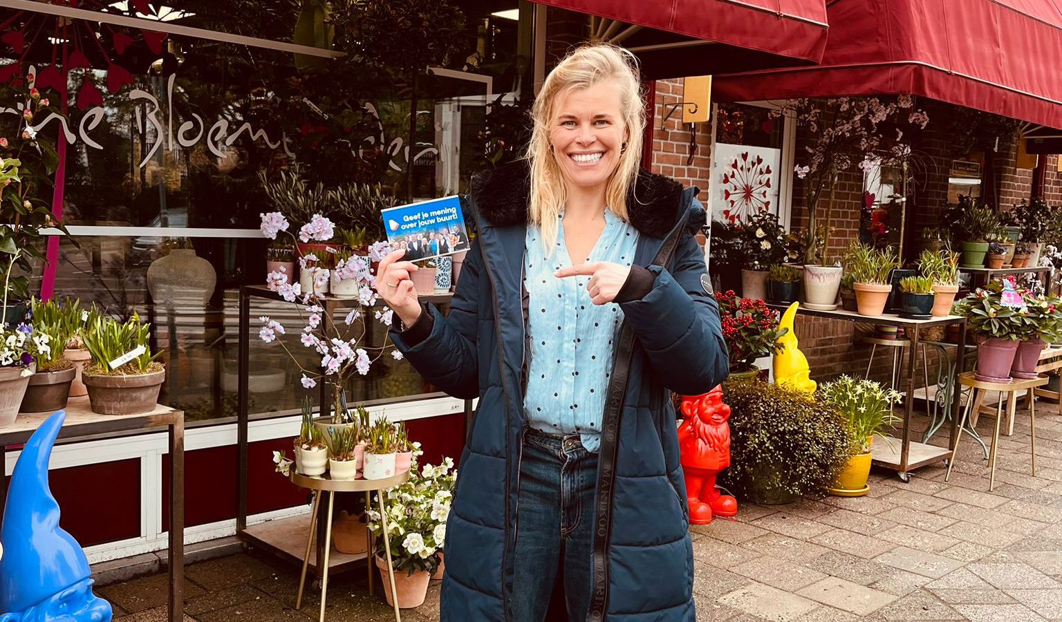 Noor Sluijs-van Haastert, nummer 2 op de lijst van VVD Baarn, bezoekt ondernemers in Baarn om met hen in gesprek te gaan over het lokale ondernemersklimaat.