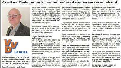 Welkom op de site van VVD Bladel! Wij zetten ons in voor een veilig, vooruitstrevend en daadkrachtig Bladel. Met realistische plannen, lokale betrokkenheid en een open blik bouwen we samen aan de kansen voor al de dorpen in onze gemeente. Doe mee, denk mee, maak het verschil in Bladel.