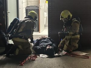 Tijdens het bezoek werden de vrijwilligers feestelijk in het zonnetje gezet met koffie en taart, als blijk van waardering voor hun onmisbare inzet voor de veiligheid van de inwoners van Bloemendaal en omgeving. Aansluitend volgde een indrukwekkende oefening met gevaarlijke stoffen, die opnieuw onderstreepte hoeveel deskundigheid, training en toewijding het brandweervak vraagt.