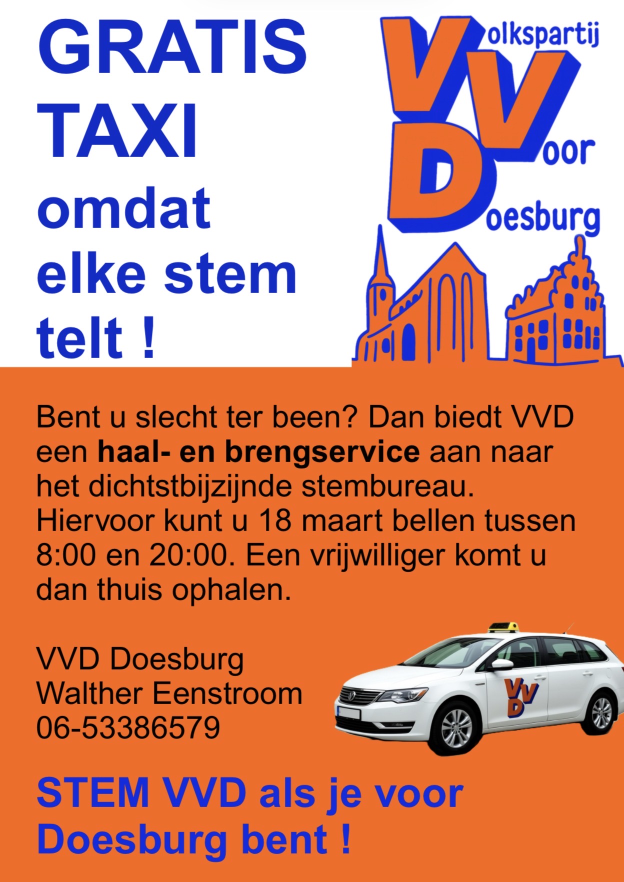 OP 18 MAART BIEDT VVD DOESBURG U EEN GRATIS TAXI AAN !