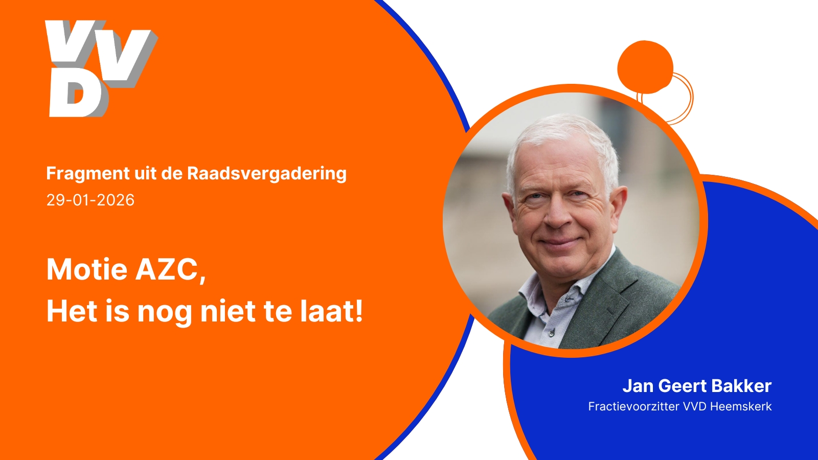In de raadsvergadering van 29 januari 2026 stond een van de meest besproken dossiers van dit moment op de agenda: de realisatie van een AZC aan de Tolweg. Voor Jan Geert Bakker, die namens VVD Heemskerk het woord voerde, was de toon direct gezet bij het zien van de vijftig lege stoelen in de zaal. Deze lege plekken zijn voor ons het symbool geworden voor het hele proces rondom de asielopvang. Het is een proces op afstand met te weinig betrokkenheid van burgers en met veel bestuurlijke tekortkomingen.