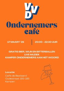 Bij de VVD Kampen staan we voor uitbreiding van bedrijventerreinen, minder regels en meer vrijheid voor ondernemers in onze regio. Dagelijks spreken wij kleine en grote ondernemers uit de gemeente, maar welke setting leent zich nou beter om met elkaar van gedachten te wisselen dan een borrel met een bitterbal?