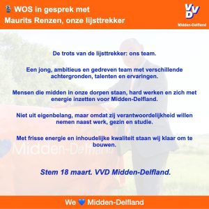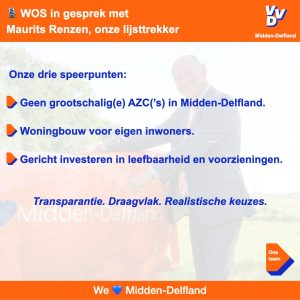 Midden-Delfland verdient duidelijke keuzes en transparant bestuur. Deze week ging de WOS in gesprek met Maurits Renzen over de speerpunten van VVD Midden-Delfland, het ambitieuze team dat klaarstaat en de keuzes die wij willen maken.