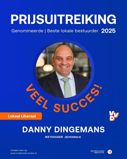 d (04-02) vindt de prijsuitreiking plaats voor Beste lokale bestuurder 2025.Wethouder Danny Dingemans is hiervoor genomineerd, een landelijke erkenning voor bestuurders die zich onderscheiden door daadkracht, duidelijke keuzes en verantwoordelijkheid nemen, ook wanneer dossiers complex zijn.