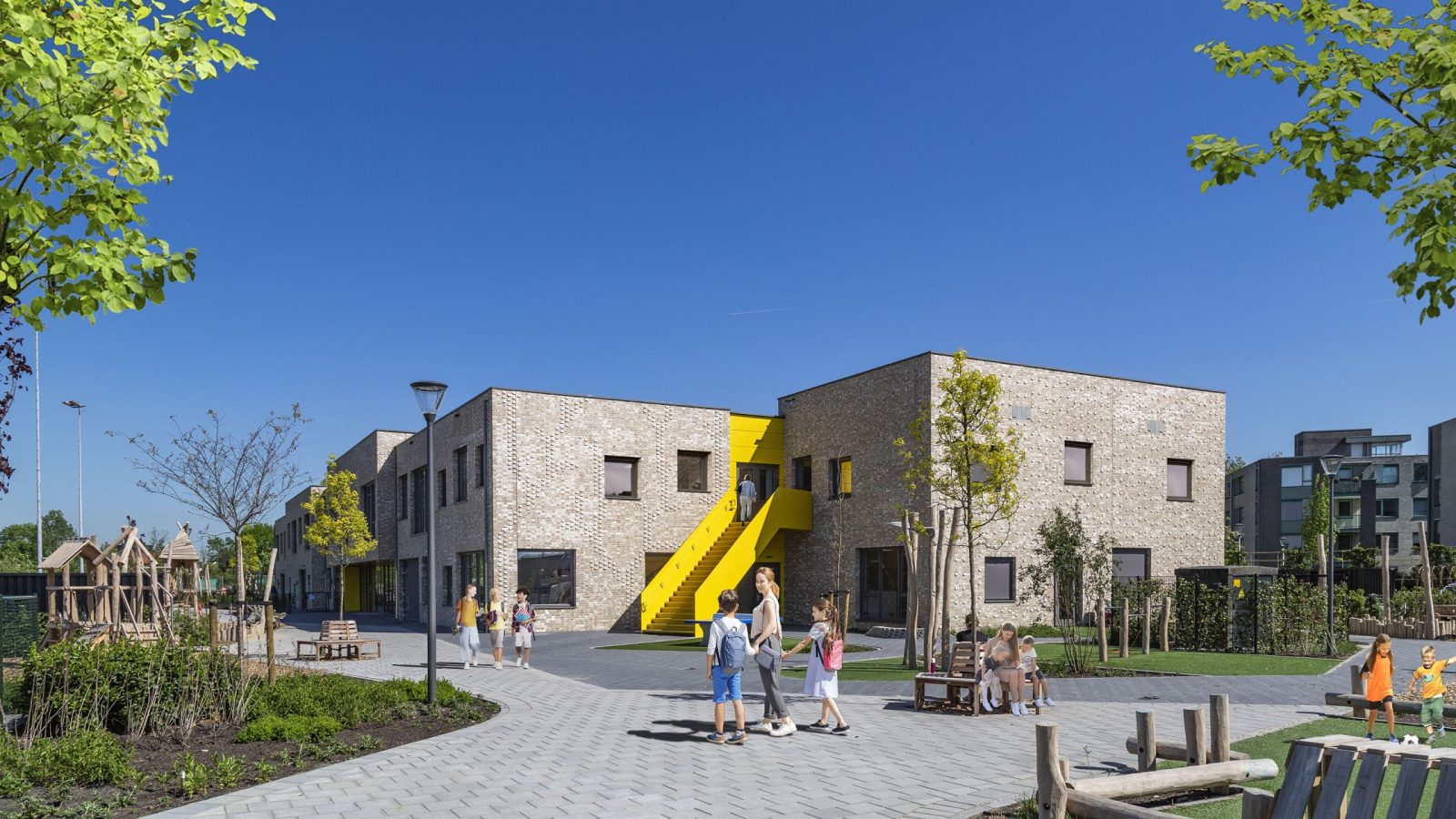 Vandaag was het eindelijk zo ver. Honderden leerlingen kregen voor het eerst les in het nieuwe scholencomplex aan de Parklaan! Zo kunnen de leerlingen en de leraren van scholen De Howiblo, De Hobbitstee en De Graaf Jan eindelijk genieten van het nieuwe gebouw.