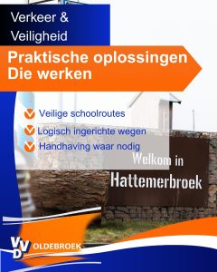In Oldebroek houden we van aanpakken en van vrijheid. Laten we die vrijheid koesteren door met respect voor elkaar deel te nemen aan het verkeer. Dat is pas echt liberaal: je verantwoordelijkheid nemen zonder dat er een agent aan je raam hoeft te kloppen.