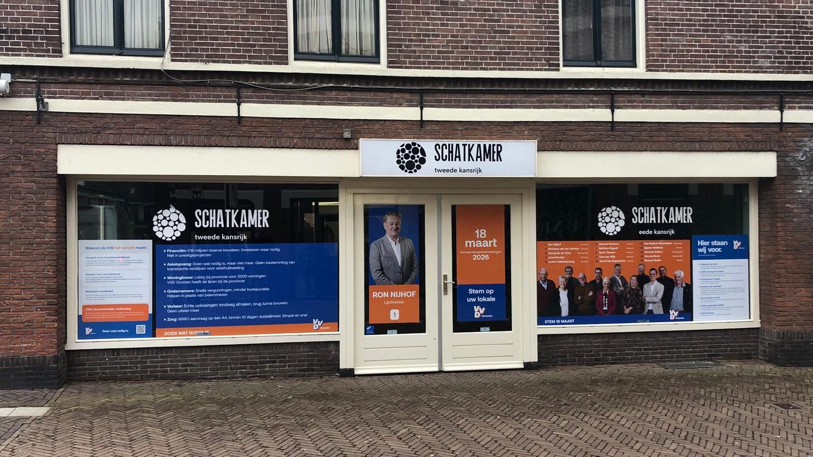 📌 Het pand is eenvoudig te herkennen aan de duidelijke VVD-signing op de gevel.