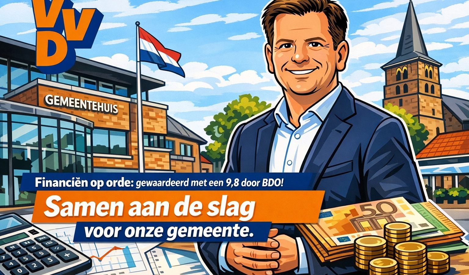 De gemeentefinanciën zijn de afgelopen vier jaar met zorg en verantwoordelijkheid beheerd. Dat blijkt ook uit het onafhankelijke oordeel van accountantskantoor BDO, dat de financiële positie van onze gemeente beoordeelt met een 9,8. In onderstaande video vertelt onze partijleider waarom dit resultaat belangrijk is voor inwoners en ondernemers, en hoe de VVD ook de komende jaren wil blijven zorgen voor een stabiel en betrouwbaar lokaal bestuur.