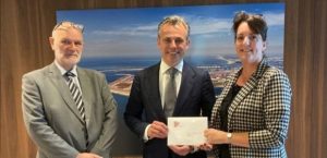 Foto: overhandiging brief 2023. vlnr: VVD raadslid Peter Vlam, VVD Minister Mark Harbers, VVD fractievoorzitter Angelique Ligthart.