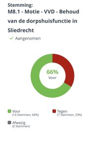 Tijdens de raadsvergadering van 3 februari 2026 werd de motie: Behoud van de ‘dorpshuisfunctie’ in Sliedrecht, behandeld. De motie werd aangenomen met 14 van de 21 stemmen in raad. Hiermee is de opdracht aan het toekomstige college helder.