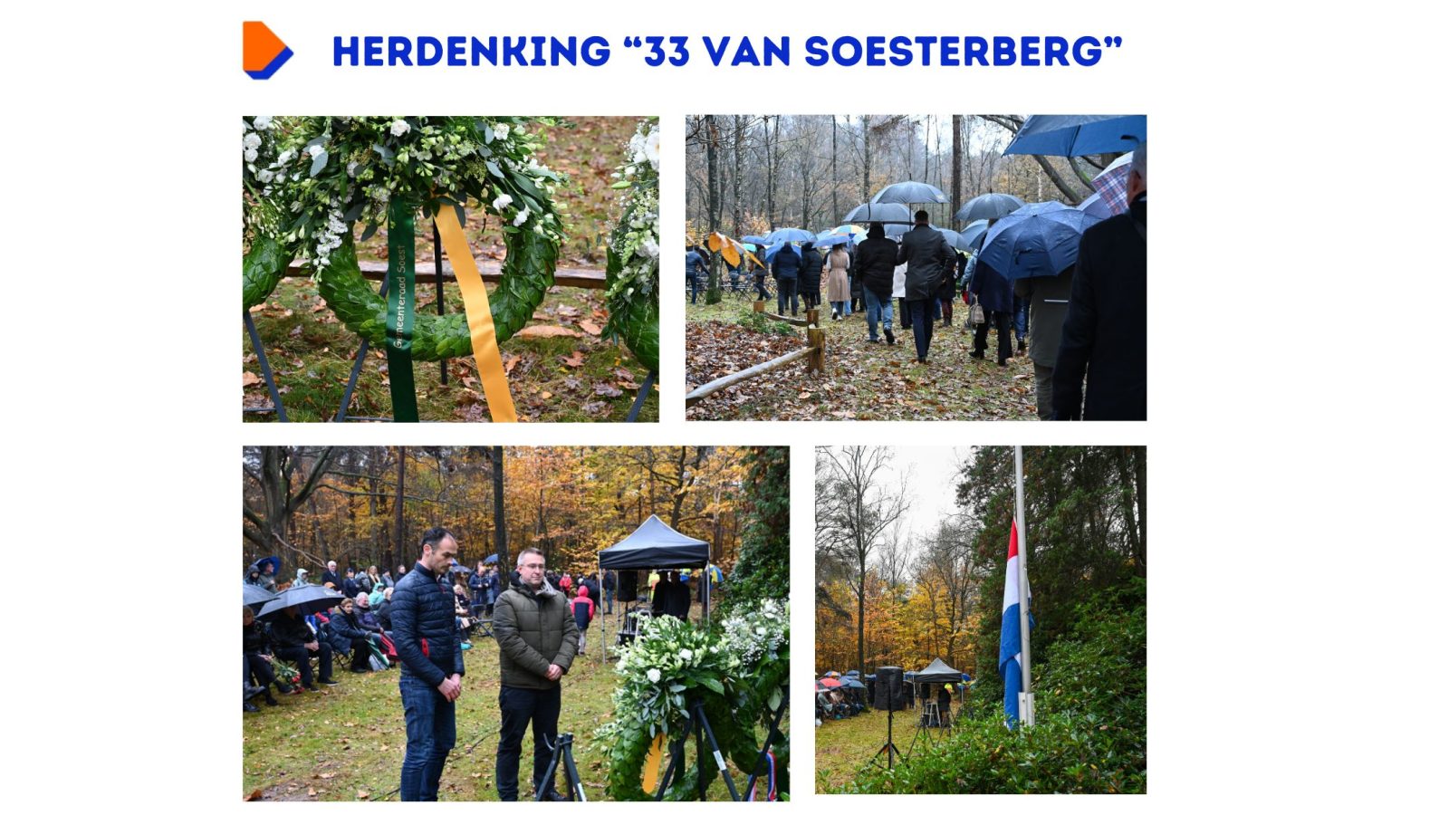 Deze 33 verzetshelden werden op 19 november 1942 gefusilleerd door de Duitsers op Vliegbasis Soesterberg, die destijds in handen was van de bezetter. Tijdens een mooie ceremonie georganiseerd door Comité 4 en 5 mei Soest-Soesterberg, brachten leerlingen van de Egelantier een eerbetoon aan deze helden. Joost Lobbes en Thom Schotman legden namens de Gemeenteraad van Soest een krans. Joost Lobbes: “Het is een ongelooflijke eer om deze helden te mogen eren. Zij gaven hun leven voor onze vrijheid, in hun strijd tegen de bezetter en antisemitisme. Vrijheid die momenteel steeds meer onder druk staat en antisemitisme dat helaas weer ruimschoots de kop opsteekt. Juist daarom is het van extra groot belang om deze gebeurtenis te herdenken en de verhalen van deze helden te delen met de jongste generatie.”