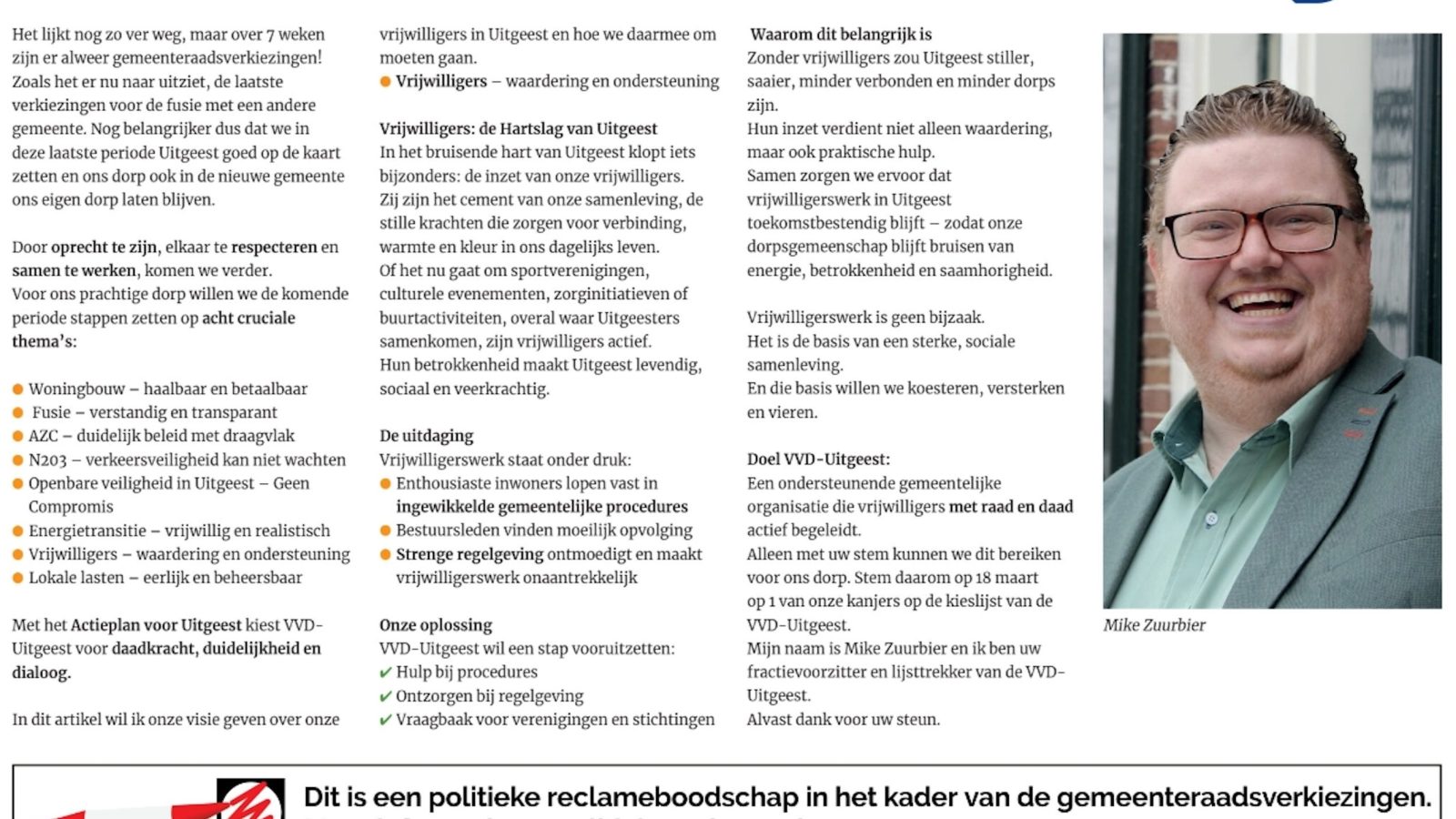 De Uitgeester 28 januari: actiepunt vrijwilligers