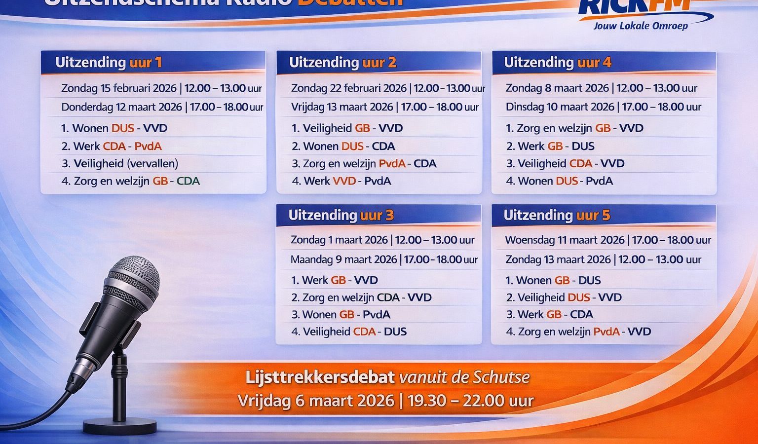 Uitzendschema Radio Debatten, RickFM