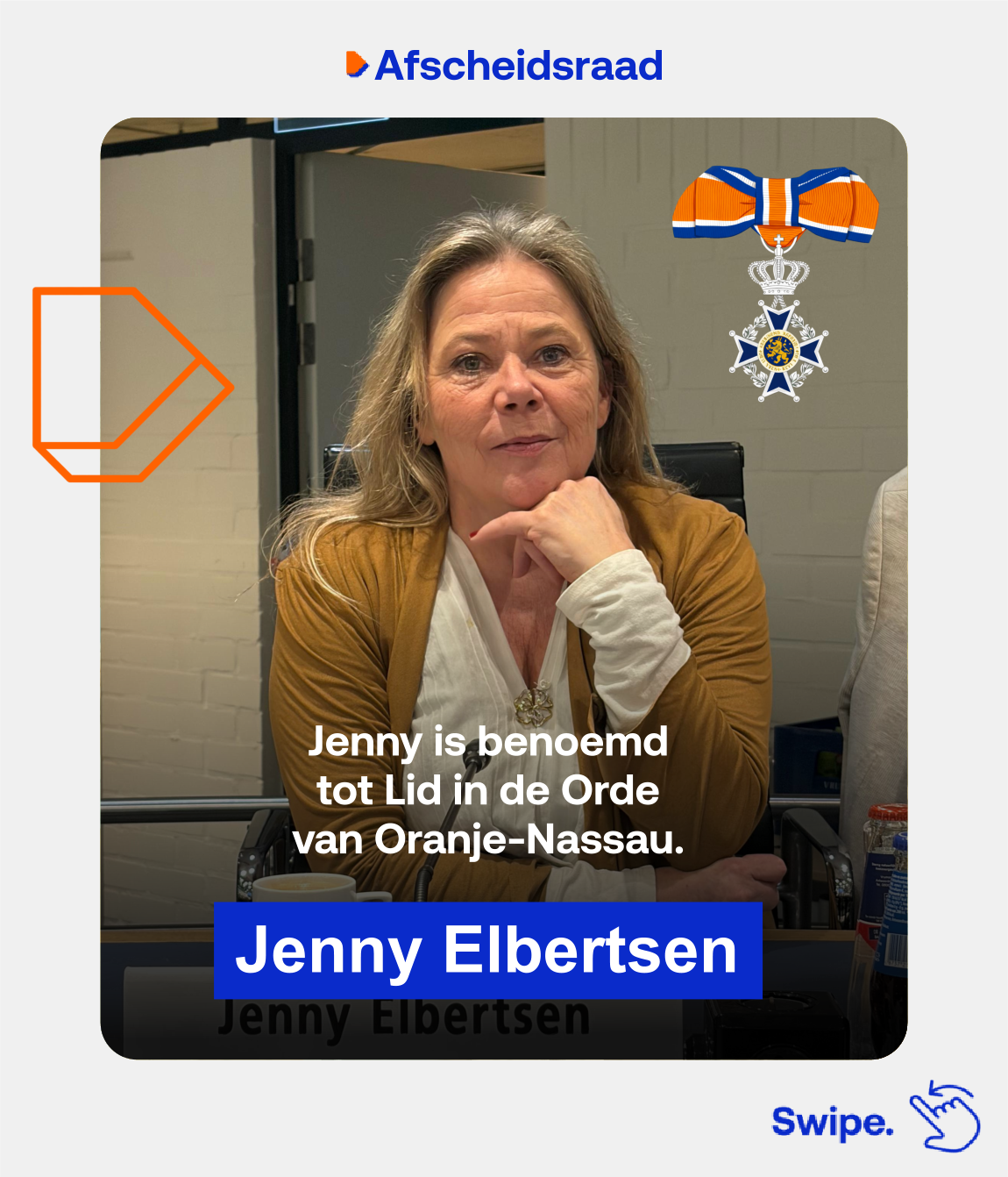 Een bijzonder moment tijdens deze avond was de koninklijke onderscheiding voor Jenny Elbertsen*. Zij is benoemd tot Lid in de Orde van Oranje-Nassau, als erkenning voor haar jarenlange inzet en verdiensten. Een waardering die haar inzet op passende wijze onderstreept.