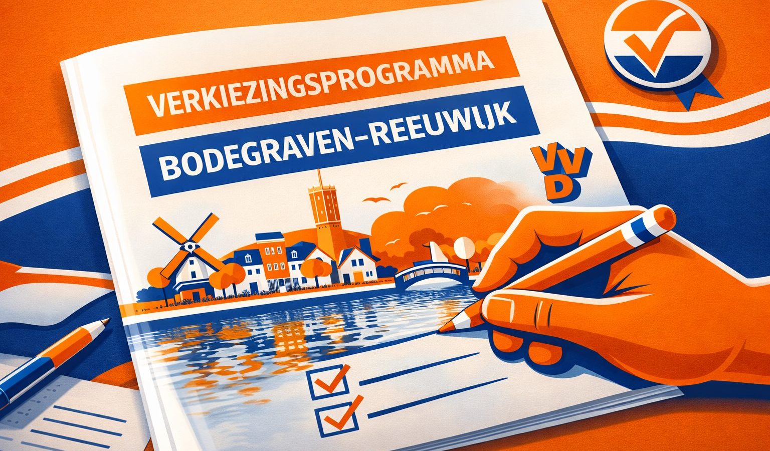 De VVD presenteert haar verkiezingsprogramma voor 2026–2030 in Bodegraven-Reeuwijk. Met een duidelijke en realistische koers kiest de VVD voor bestuurlijke daadkracht, veiligheid en financiële degelijkheid. Een programma voor inwoners die vertrouwen willen op een bestuur dat doet wat nodig is — en doet wat het belooft.