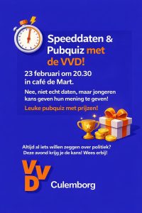 Wij steunen haar oproep volledig. Aanstaande maandag de 23e zijn we in Café De Mart. Geen politiek jargon, maar gewoon horen wat er leeft onder de Culemborgse jongeren onder het genot van een drankje en een pubquiz.