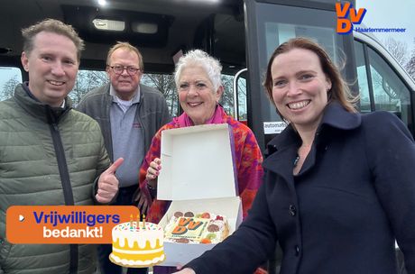 De statenfractie van de Noord-Hollandse VVD kiest jaarlijks een vrijwilligersinitiatief uit om deze te verrassen met taart. VVD Haarlemmermeer nomineerde de vrijwilligers van de ‘Buurtbus vereniging Zwaanshoek’.