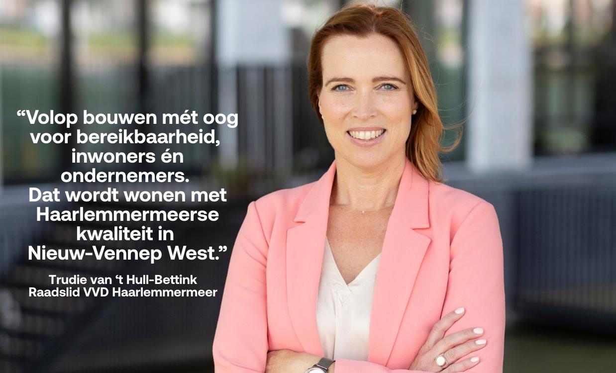 Wij zien Nieuw-Vennep West als een kans om het woonaanbod uit te breiden met kwaliteit, en daarom is het belangrijk om oog te houden voor bereikbaarheid, bestaande bewoners en ondernemers en de financiële onderbouwing van dit project. “Kortom, laten we veel, snel en slim bouwen met Haarlemmermeerse kwaliteit.” Besloot van ’t Hull-Bettink haar betoog tijdens het raadsdebat van 12 februari 2026.