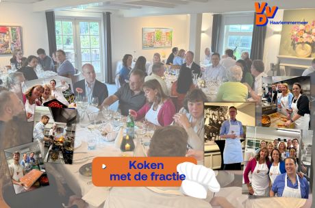 De fractie en bestuur & wethouders zijn deze avond voor de gelegenheid omgetoverd tot een grote ploeg hulpkok’s die onder stevige begeleiding van chefkok Alfred van Dijk van Het Oude Dykhuys in Lisserbroek een heerlijk diner voor de gasten op tafel zet.
