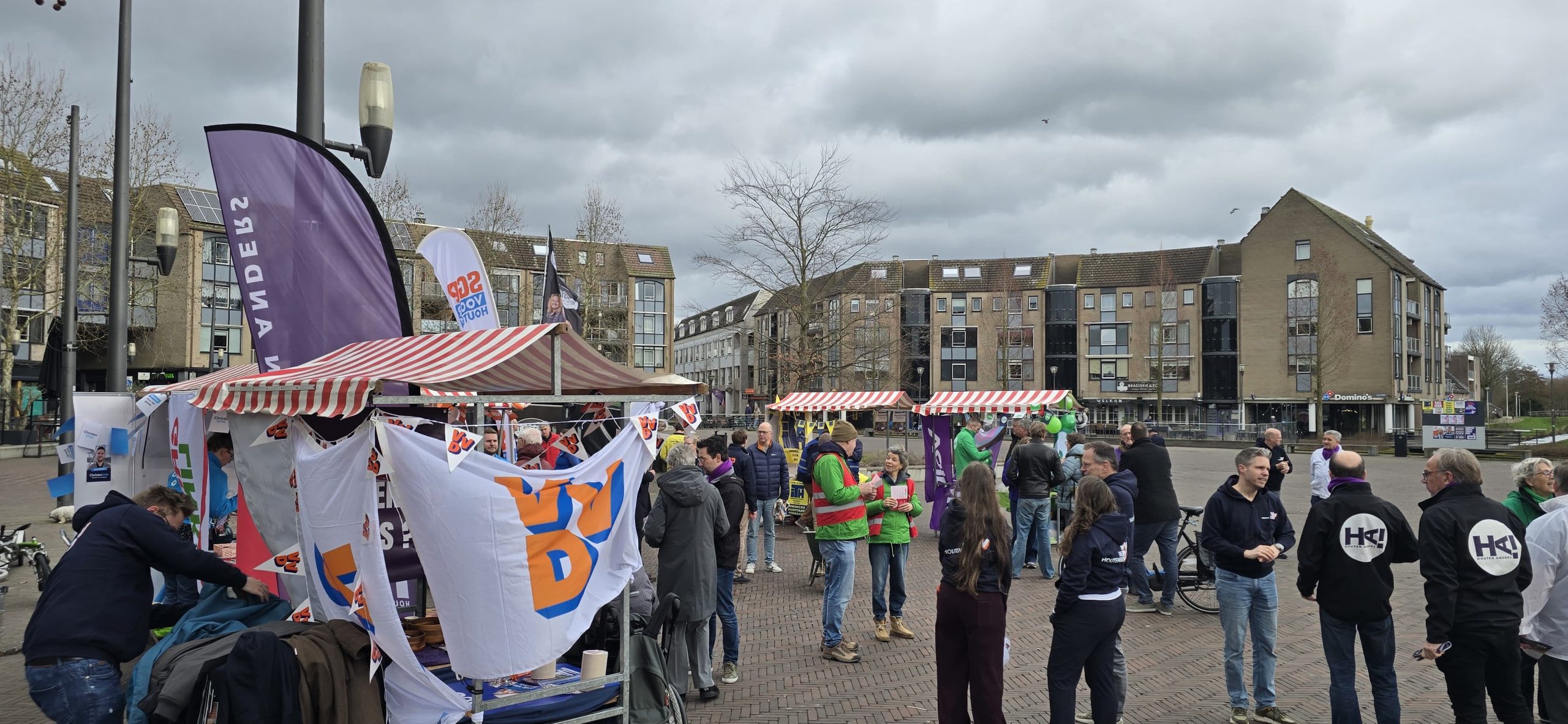 De eerste verkiezingsmarkt in Houten stond namelijk op de agenda! En ook al deed het weer goede pogingen om ons weg te waaien, hebben we toch goede gesprekken kunnen voeren met onze inwoners.