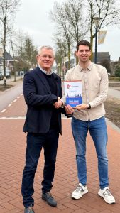 VVD campagneleider Tycho Schoones biedt het programma aan aan lijsttrekker Jan Van Burgsteden. #vooruwtoekomst !