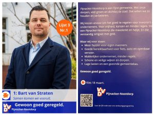 Ik ben Bart van Straten, lijsttrekker van VVD Pijnacker-Nootdorp en wethouder. Geboren in Nootdorp en woonachtig in Pijnacker voel ik mij sterk verbonden met onze hele gemeente.
