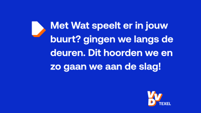 Met ruimte om te wonen, werken en ondernemen, en met grip op onze eigen toekomst. Zo houden we Texel veilig, leefbaar en betaalbaar. Daarvoor zet VVD Texel zich iedere dag in.