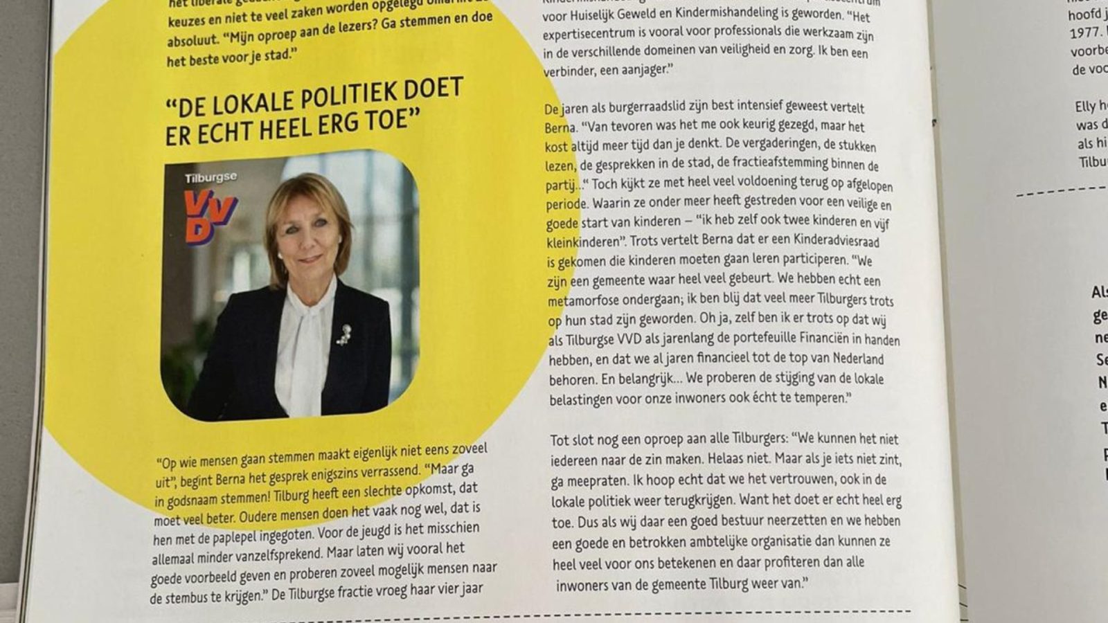 Na vier jaar als burgerraadslid voor de Tilburgse VVD neemt Berna Trommelen (74) afscheid van de gemeentepolitiek. In het magazine De Draad kijkt zij terug op een intensieve maar waardevolle periode waarin zij zich met name inzette voor het sociaal domein: WMO, jeugd en ouderen.